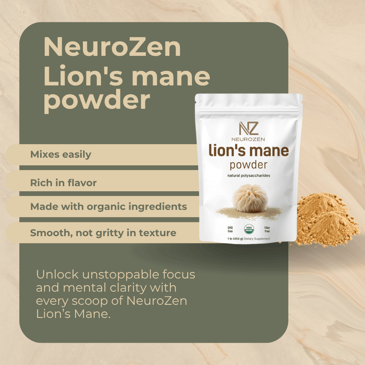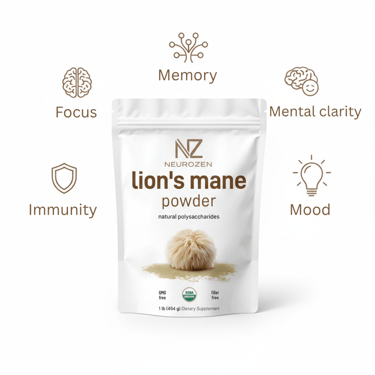 Discover the power of pure fruiting-body Lion's Mane extract. Boost mental clarity, support nerve growth, and tackle stress.